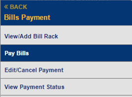 2. Click Pay Bills on the CLiQQ dashboard to see additional selections